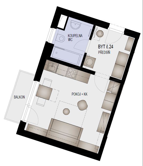 | Dispozice bytu: | 1+kk |