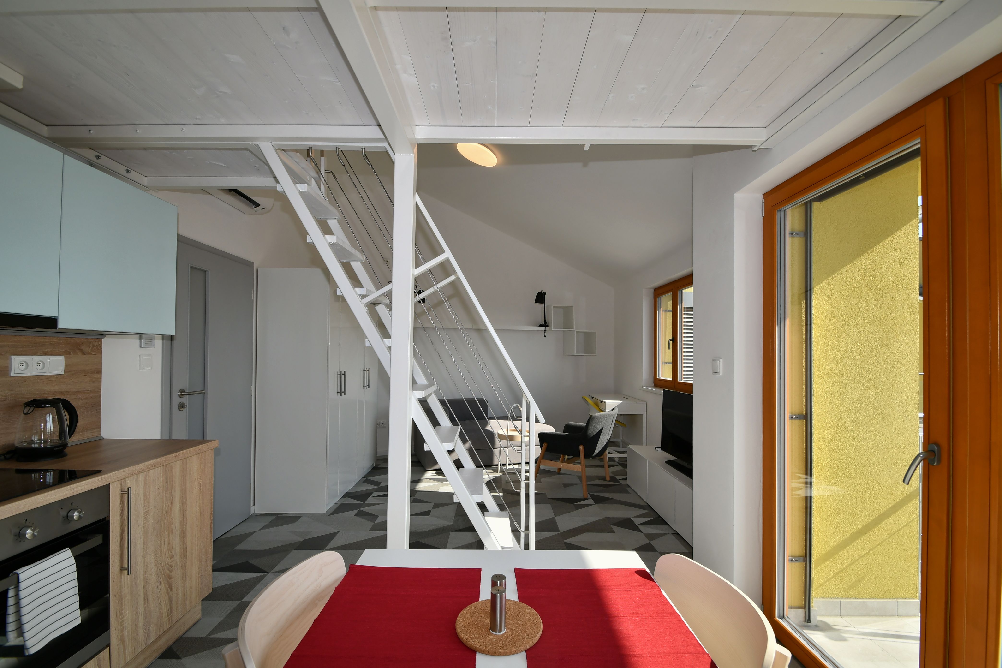 Nabízíme dokončený byt 1+kk v novostavbě EFI Residence Holzova 28, zkolaudované v září 2022. Byt se nachází ve druhém patře a spojuje komfortní vybavení, kvalitní materiály a chytrou domácnost SIEMENS. Dispozice a vybavení Byt má celkovou podlahovou plochu 38,9 m2, dále lodžii 2,9 m2 a sklepní kóji 2,3 m2. Vstup do bytu je z pavlače ve druhém patře bytového domu. Z chodby (8,9 m2) se vchází do koupelny (4,7 m2) vybavené vanou, umyvadlem a WC. Obývací pokoj s kuchyňským koutem (23,4 m2) má okna a balkónové dveře orientované na jižní stranu do dvorní části domu. Z pokoje je vstup na lodžii 2,9 m2, která poskytuje příjemné soukromí a dostatek světla. Kuchyňská linka je plně vybavena spotřebiči: indukční varná deska, horkovzdušná trouba, digestoř, myčka a dřez. V bytě je podlahové vytápění s vlastním plynovým kondenzačním kotlem Baxi Nuvola Duo-tec se zásobníkem teplé vody. O chlazení se stará klimatizační jednotka Daikin. Chytrá domácnost SIEMENS umožňuje pohodlné ovládání topení, chlazení i stínění oken z jednoho místa. Podlahy jsou vinylové Expona Domestic, odstín grey geometric, v koupelně je slinutá dlažba RAKO EXTRA (45×45 cm, tmavě šedá) a obklady ARGENTA CAEN (20×60 cm, bílá, Španělsko). Dřevěná okna v dekoru dub světlý jsou osazena izolačními trojskly a doplněna elektricky ovládanými žaluziemi VEKRA v šedé barvě. Sklep a parkování K bytu náleží sklepní kóje 2,3 m2 umístěná v suterénu domu. Součástí nabídky je možnost koupě vlastní garáže s dálkově ovládanými sekčními vraty a vjezdem z dvorní části objektu. K dispozici jsou garáže o ploše od 19,5 m2, s cenou od 1 367 000 Kč. Lokalita: Brno-Líšeň Městská část Líšeň patří mezi nejžádanější lokality v Brně. Nabízí klidné prostředí, plnou občanskou vybavenost a výborné dopravní spojení. Zastávky MHD jsou v blízkosti, centrum i dálnice D1 jsou snadno dosažitelné. Pro volný čas a relaxaci potěší blízkost Mariánského údolí a okolních lesů navazujících na CHKO Moravský kras. Shrnutí Dispozice: 1+kk, 38,9 m2 + lodžie 2,9 m2 + sklep 2,3 m2 Kolaudace: 2022 Vybavení: kuchyňská linka se spotřebiči, AC Daikin, podlahové topení Baxi, Smart Home Siemens, žaluzie VEKRA, vinylové podlahy Expona, dlažba RAKO, obklady ARGENTA Parkování: možnost dokoupení garáže od 1 367 000 Kč Lokalita: Brno-Líšeň, ul. Holzova Stylový byt s jižní orientací, lodžií a kompletním technickým komfortem, ideální pro singles, páry nebo investory.