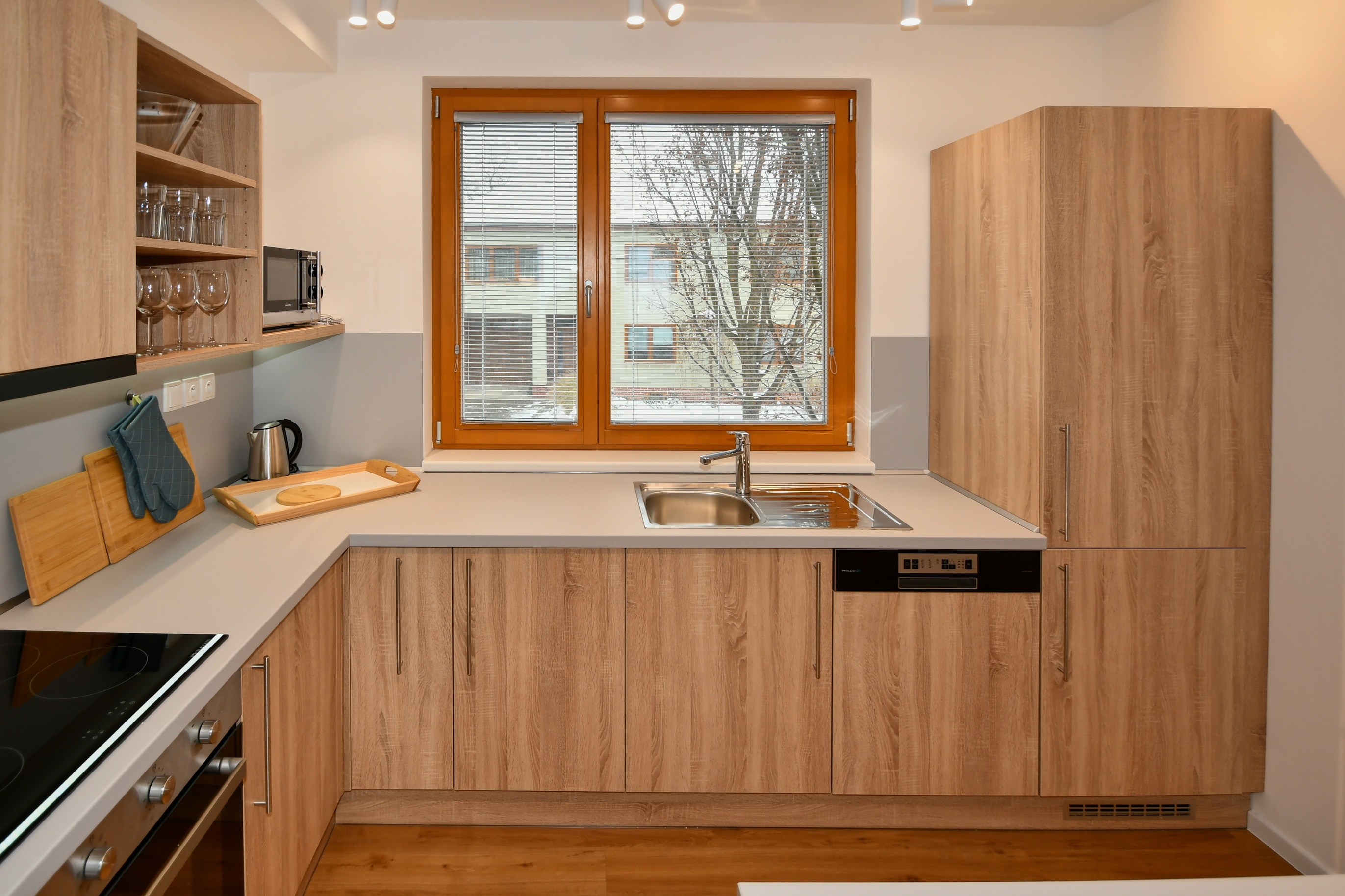 Nabízíme dokončený byt 3+kk v novostavbě EFI Residence Holzova 28, zkolaudované v září 2022. Byt zaujme promyšlenou dispozicí, vysokým technickým standardem a příjemnou orientací do klidné dvorní části domu. Dispozice a vybavení Byt má celkovou podlahovou plochu 81,4 m2, dále lodžii 5,3 m2 a sklepní kóji 3 m2. Obývací pokoj s kuchyňským koutem (29,1 m2) je vybaven kuchyňskou linkou včetně spotřebičů: indukční varná deska, horkovzdušná trouba, digestoř, myčka nádobí a dřez. Z pokoje je vstup na západně orientovanou lodžii o ploše 5,3 m2, která nabízí příjemné posezení s výhledem do dvora. Další dva pokoje (14,8 m2 a 8,8 m2) mají samostatné vstupy z předsíně (13,8 m2), kde je umístěn dveřní videotelefon. Koupelna (5,8 m2) je vybavena vanou a dvěma umyvadly, WC (1,7 m2) je samostatné. V technické místnosti (3,5 m2) je přípojka na pračku. O vytápění se stará podlahové topení s plynovým kondenzačním kotlem Baxi Nuvola Duo-tec se zásobníkem teplé vody. K letnímu komfortu přispívá klimatizační jednotka Daikin. Byt je vybaven systémem chytré domácnosti SIEMENS, který umožňuje pohodlně ovládat topení, chlazení i stínění oken z jednoho místa. Dřevěná okna s trojskly doplňují elektricky ovládané předokenní žaluzie VEKRA v obývacím pokoji, které zajišťují ticho a soukromí. V celém bytě jsou vinylové podlahy. Sklep a parkování K bytu náleží sklepní kóje 3 m2 umístěná v suterénu domu. Součástí nabídky je možnost koupě vlastní garáže s dálkově ovládanými sekčními vraty a vjezdem z dvorní části objektu. K dispozici jsou garáže o ploše od 19,5 m2, s cenou od 1 367 000 Kč. Lokalita: Brno-Líšeň Městská část Líšeň je vyhledávaná pro své klidné prostředí, kompletní občanskou vybavenost a výborné dopravní spojení. Zastávky MHD jsou v blízkosti, centrum města i dálnice D1 jsou snadno dostupné. Pro volný čas a rekreaci je ideální Mariánské údolí a okolní lesy navazující na CHKO Moravský kras. Shrnutí Dispozice: 3+kk, 81,4 m2 + lodžie 5,3 m2 + sklep 3 m2 Kolaudace: 2022 Vybavení: kuchyňská linka se spotřebiči, AC Daikin, podlahové topení Baxi, Smart Home Siemens, žaluzie VEKRA Parkování: možnost dokoupení garáže od 1 367 000 Kč Lokalita: Brno-Líšeň, ul. Holzova Moderní a světlý byt s lodžií, prémiovým technickým standardem a chytrou domácností, ideální pro rodiny i náročné klienty hledající komfortní bydlení v klidné části Brna.