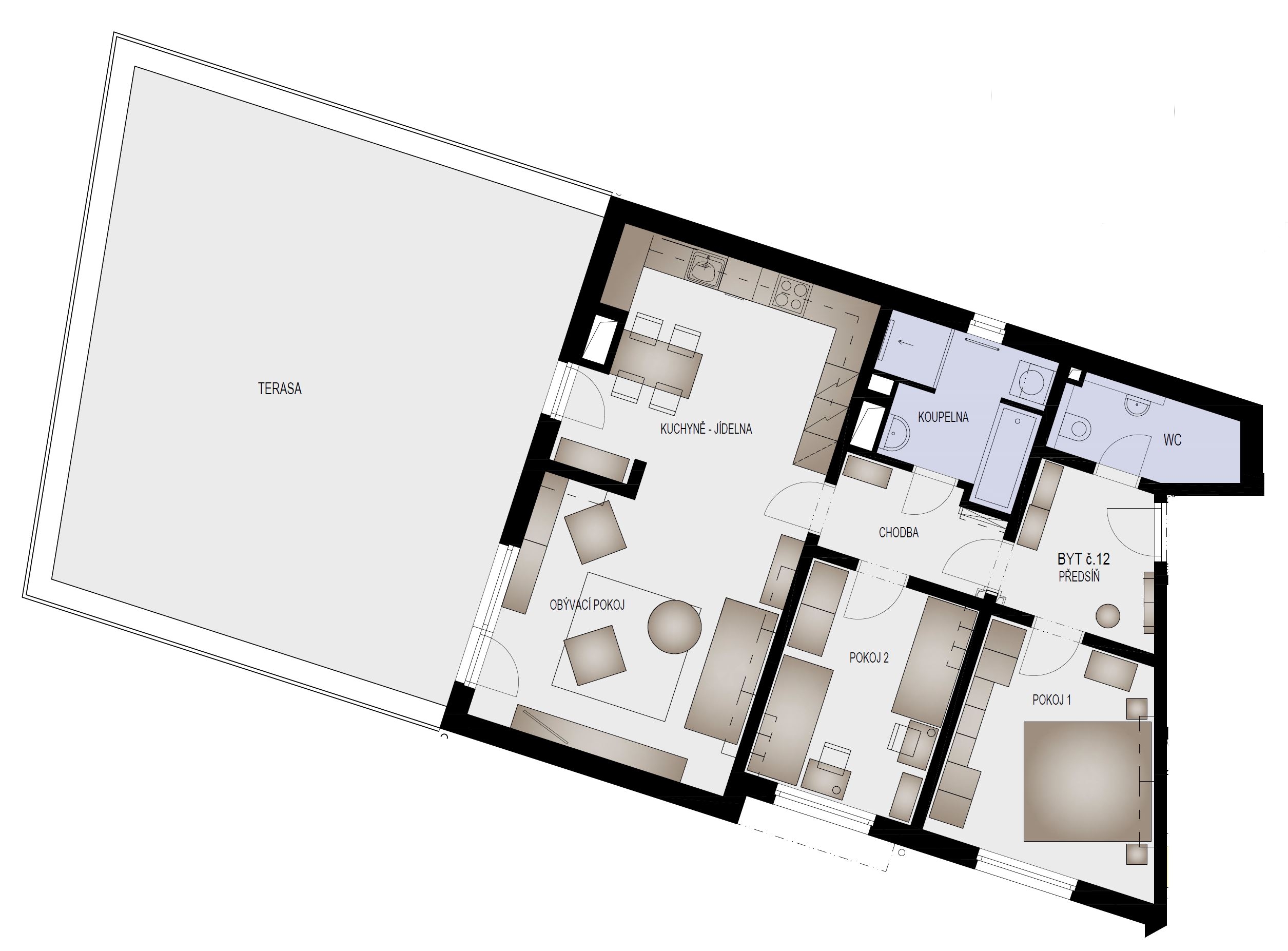 | Dispozice bytu: | 3+kk |