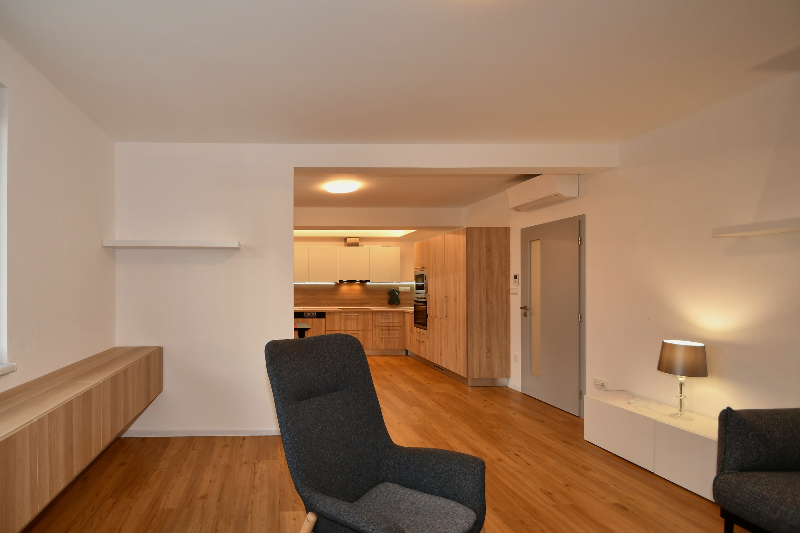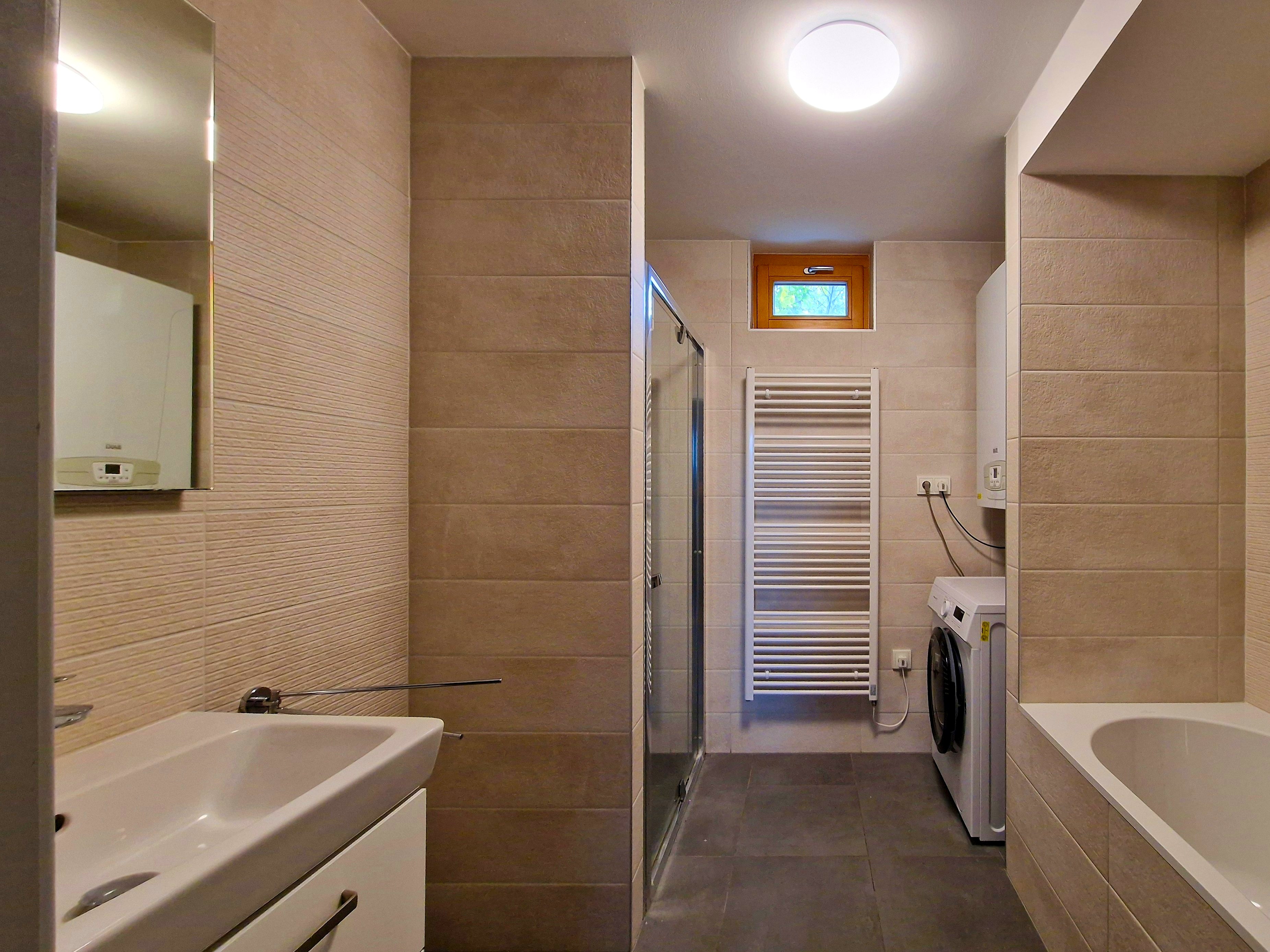 Nabízíme dokončený byt 3+kk v novostavbě EFI Residence Holzova 28, zkolaudované v září 2022. Tento byt v přízemí domu nabízí ideální kombinaci pohodlí, technického komfortu a soukromí. Dispozice a vybavení Byt má celkovou podlahovou plochu 83,8 m2, k tomu terasu 66 m2 a sklepní kóji 3 m2. Obývací pokoj s kuchyňským koutem (38,1 m2) je vybaven prostornou kuchyňskou linkou včetně spotřebičů: indukční varná deska, horkovzdušná trouba, digestoř, mikrovlnná trouba, myčka nádobí a dřez. Z obývacího pokoje je přímý vstup na západně orientovanou terasu o ploše 66 m2. Další dva pokoje (13,3 m2 a 11,2 m2) mají samostatné vstupy a jsou orientovány do klidné dvorní části domu. Předsíň (6,2 m2) je vybavena dveřním videotelefonem. K dispozici je samostatné WC (4,1 m2) a chodba (4,7 m2). Koupelna (6,3 m2) nabízí umyvadlo, vanu, sprchový kout a přípojku na pračku. V bytě je podlahové vytápění s plynovým kondenzačním kotlem Baxi Nuvola Duo-tec se zásobníkem teplé vody. O chlazení se stará klimatizační jednotka Daikin. Součástí vybavení je chytrá domácnost SIEMENS, která umožňuje z jednoho místa ovládat topení, chlazení i stínění oken. Dřevěná okna s trojskly doplňují elektricky ovládané žaluzie VEKRA, které zajišťují ticho a soukromí. V celém bytě jsou vinylové podlahy. Sklep a parkování K bytu náleží sklepní kóje 3 m2 umístěná v suterénu domu. Součástí nabídky je možnost koupě vlastní garáže s dálkově ovládanými sekčními vraty a vjezdem z dvorní části objektu. K dispozici jsou garáže o ploše od 19,5 m2, s cenou od 1 367 000 Kč. Lokalita: Brno-Líšeň Městská část Líšeň patří mezi nejvyhledávanější rezidenční lokality Brna. Nabízí klidné prostředí, plnou občanskou vybavenost a výborné dopravní spojení, zastávky MHD jsou v blízkosti, centrum i dálnice D1 jsou snadno dosažitelné. Pro rekreaci a aktivní odpočinek potěší blízkost Mariánského údolí a lesů směrem k CHKO Moravský kras. Shrnutí Dispozice: 3+kk, 83,8 m2 + terasa 66 m2 + sklep 3 m2 Kolaudace: 2022 Vybavení: kuchyňská linka se spotřebiči, AC Daikin, podlahové topení Baxi, Smart Home Siemens, žaluzie VEKRA Parkování: možnost dokoupení garáže od 1 367 000 Kč Lokalita: Brno-Líšeň, ul. Holzova Prémiová novostavba s velkou terasou a chytrým řízením domácnosti, ideální volba pro rodiny nebo klienty, kteří hledají prostorné a moderní bydlení s důrazem na kvalitu.