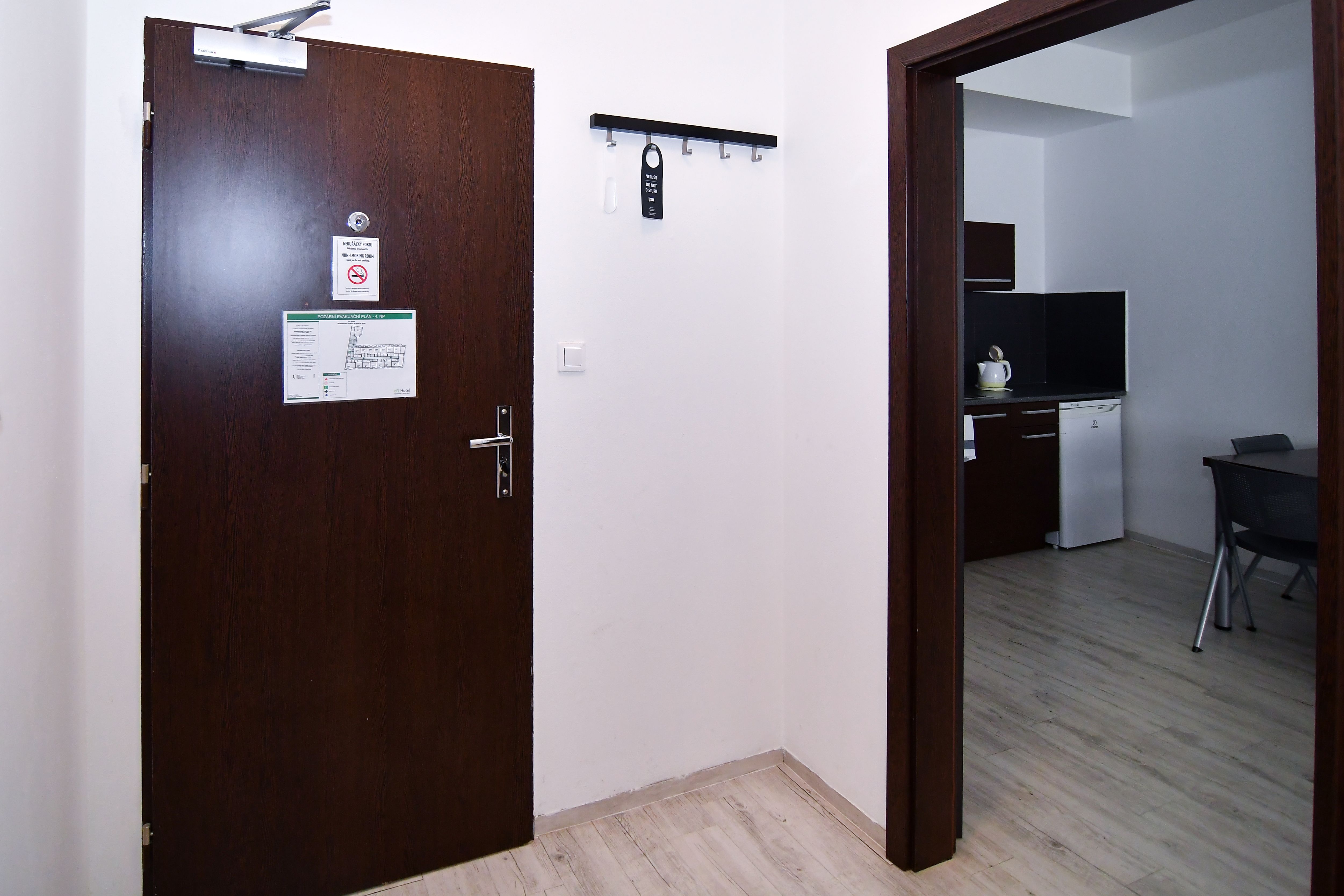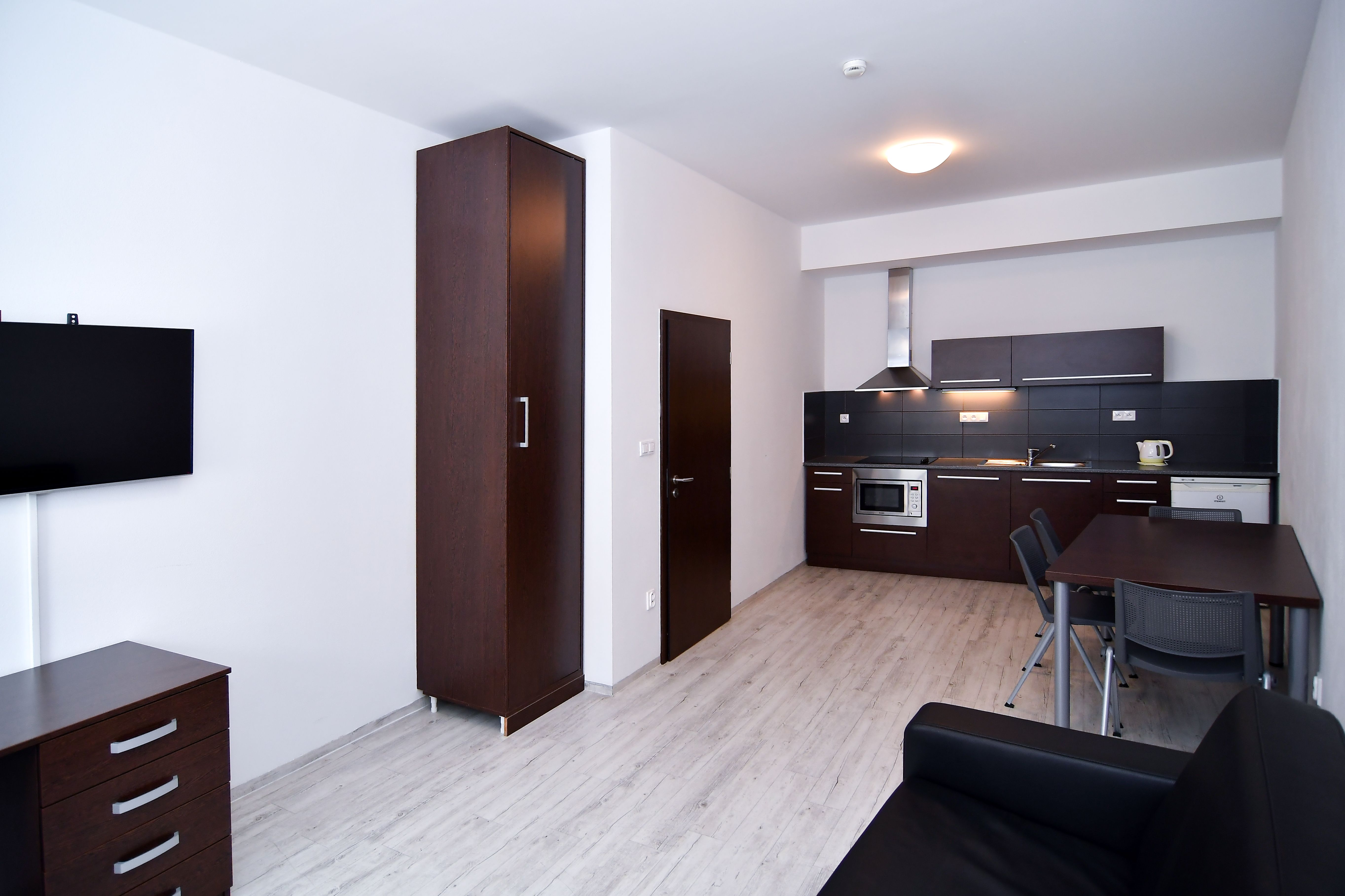 Pro studijní i pracovní pobyty nabízíme pronájem plně zařízeného bytu 2+kk včetně kuchyňské linky a elektrospotřebičů v hotelovém komplexu eFi Palace Hotel v centru Brna. V rámci uzavřeného hotelového komplexu Vám bude k dispozici také fitness, wellness, restaurace, venkovní bazén a parkování na hlídaném parkovišti. Pronájem bytu je možný od dvou měsíců až po dobu jednoho roku. Nájemcem může být fyzická osoba či firma. Odjíždíte na léto domů? Nevadí, byt uvolníte na letní období, ve kterém nebudete nic platit, a od podzimu se můžete znovu nastěhovat do stejného bytu. Byty 2+kk jsou o výměře 45,09 až 46,3 m2 a nacházejí se ve 2.-5. podlaží. Budova je opatřena výtahem i schodištěm Byt má vstupní chodbu vybavenou vysokou šatní skříní s celoplošným zrcadlem a pokojovým trezorem. Dále byt disponuje obývací částí s rozkládací sofa, moderní vybavenou kuchyňskou linkou s pracovní deskou, podstavnou lednicí Indesit, vestavěnou mikrovlnou trouba s grilem a horkovzdušnou troubou, varnou konvicí a jídelní soupravou s nádobím pro 4 osoby. Pokoj je vybavený jídelním stolem se 4 židlemi, pracovním stolem s kancelářskou židlí a smart TV. Ložnice je samostatná se 2 komfortními postelemi a šatní skříní. Podlaha je vinylová, nebo s kobercem. Koupelna je s vanou, umyvadlem, wc a topným žebříkem. WiFi připojení se standardní rychlostí dat je již v ceně pronájmu. V ceně měsíčního nájmu je kalkulována paušálně i cena za odběr elektřiny, vody a topení. Cena měsíčního nájmu zahrnuje úklid společných prostor a pronájem povlečení s jejich výměnou v rozsahu jedenkrát měsíčně. Je požadovaná vratná kauce ve výši dvou měsíčních nájmů. Dlouhodobě ubytovaní nájemci mají v komplexu eFi Palace Hotelu zvýhodněný vstup do hotelového wellness a fitness centra. Nabídka je vhodná pro pracovní či studijní pobyty, a to zejména pro oborové specialisty, vytížené vedoucí pracovníky, obchodní zástupce, podnikatelé či studenty vysokých škol. Skvělá dostupnost do centra Brna za necelých 10 minut pěší chůze nebo dvě zastávky MHD. Prohlídky bytů možné kdykoli po předchozí domluvě. Neplatíte provizi za zprostředkování pronájmu!